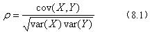其中:cov(X,Y) 是隨機變量X和Y的協方差; Var(X)和Var(Y)分別是隨機變量X和Y的方差。總體的相關系數是反映兩個變量之間線性相關程度的一種特征值,表現為一個常數。