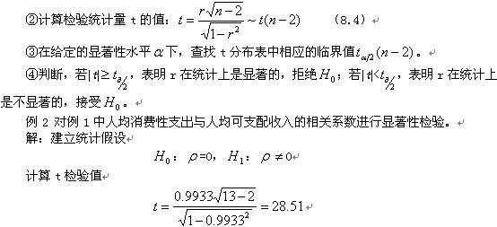 數(shù)學(xué)上可以證明,在隨機(jī)變量X和Y都服從正態(tài)分布,并且又有p=0的條件下,可以采用t檢驗(yàn)法來確定r的顯著性。其步驟如下: