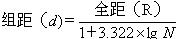 按照斯特奇公式有: 例如:要調(diào)查50人的年齡狀況,50人中最高年齡為70歲,最低年齡為3歲,故全距R=70-3=67歲,總次數(shù)N=50人,其對(duì)數(shù)lg50=1.6990,則