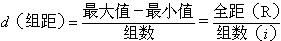 組數(shù)越多,組距越小;組數(shù)越少,組距越大。由于組距數(shù)列有等距數(shù)列與異距數(shù)列之分,在采用等距分組的情況下,變量數(shù)列編制的組距(d)可采用下列公式確定: