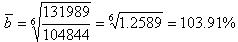 即平均發(fā)展速度為103.91%,平均增長(zhǎng)速度為103.91%-100%=3.91%