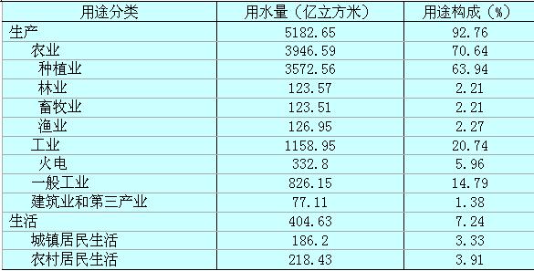 表7-3 1999年中國全國用水量及其用途構(gòu)成