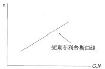 在圖7―1中,縱軸表示通貨膨脹率,橫軸表示經(jīng)濟(jì)增長(zhǎng)率(G)和就業(yè)率(N),坐標(biāo)中斜率為正的曲線表示經(jīng)濟(jì)增長(zhǎng)率與通貨膨脹率之間的正相關(guān)關(guān)系,亦即產(chǎn)出水平與價(jià)格水平的正相關(guān)關(guān)系。由于就業(yè)率與經(jīng)濟(jì)增長(zhǎng)率是正相關(guān)的,因此,坐標(biāo)中的曲線也表示就業(yè)率與通貨膨脹率之間的正相關(guān)關(guān)系。如果我們把圖7―1坐標(biāo)的橫軸表示為失業(yè)率,就會(huì)得到一條斜率為負(fù)的曲線,這條斜率為負(fù)的曲線就是我們?cè)诘谖逭轮薪o出的短期菲利普斯曲線。短期菲利普斯曲線所表示的是失業(yè)率與通貨膨脹率之間的負(fù)相關(guān)關(guān)系。由于圖7―1中斜率為正的曲線與第五章中的圖5―2中斜率為負(fù)的曲線所表示的意思相同,因此,圖7―1中斜率為正的曲線也稱為短期菲利普斯曲線。