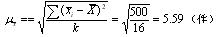 對于這16個樣本,無論抽到哪個樣本,平均誤差均為5.59件。