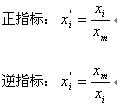 在計(jì)算時(shí)要注意“正指標(biāo)”與“逆指標(biāo)”的區(qū)別。所謂正指標(biāo)是指實(shí)際值越大表現(xiàn)越好的指標(biāo),所謂逆指標(biāo)是指實(shí)際值越小表現(xiàn)越好的指標(biāo)。正指標(biāo)與逆指標(biāo)處理方法為: