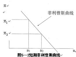 在短期中,經(jīng)濟(jì)增長、充分就業(yè)與穩(wěn)定價(jià)格水平之間的這種矛盾關(guān)系或替代關(guān)系可以用短期菲利普斯曲線表示。見圖5―2。