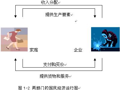 假設(shè)分析:如果在國(guó)民經(jīng)濟(jì)活動(dòng)中,只有住戶和企業(yè),二者運(yùn)行圖如下。