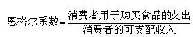 (2)恩格爾系數:消費者用于購買食品方面的支出占其可支配收入的比率。用公式表示即為: