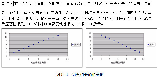 通常,當(dāng)|r|大于表中與α=5%相應(yīng)的值,但小于表中與α=1%相應(yīng)的值時(shí),稱x與y有顯著的線性關(guān)系;當(dāng)|r|大于表中與α=1%相應(yīng)的值時(shí),稱x與y有高度的線性關(guān)系;如果|r|小于表中與α=5%相應(yīng)的值時(shí),就判定x與y沒(méi)有明顯的線性關(guān)系。這種檢驗(yàn)方法通常稱臨界值法,即比較|r|與r(α,n–2)的關(guān)系。
