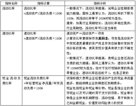 企業(yè)短期償債能力的衡量指標主要有流動比率、速動比率和現(xiàn)金流動負債比率。