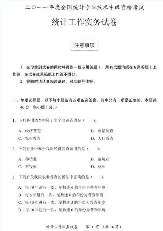 摘要 2011年中級(jí)統(tǒng)計(jì)師考試《統(tǒng)計(jì)工作實(shí)務(wù)》部分真題及答案