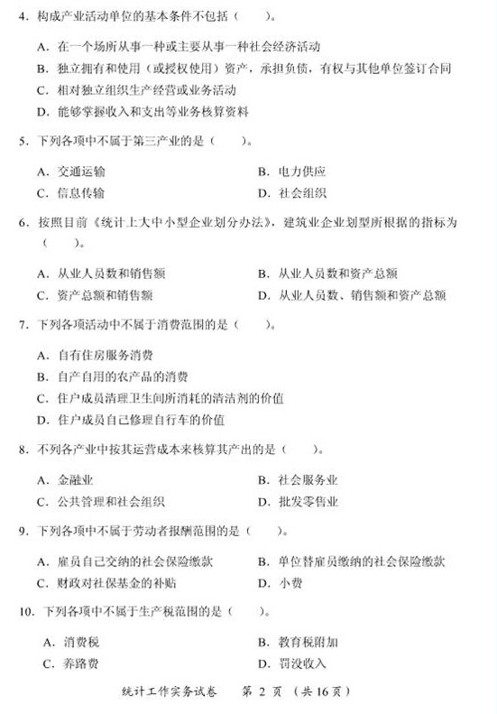 2011年中級(jí)統(tǒng)計(jì)師考試《統(tǒng)計(jì)工作實(shí)務(wù)》真題及答案