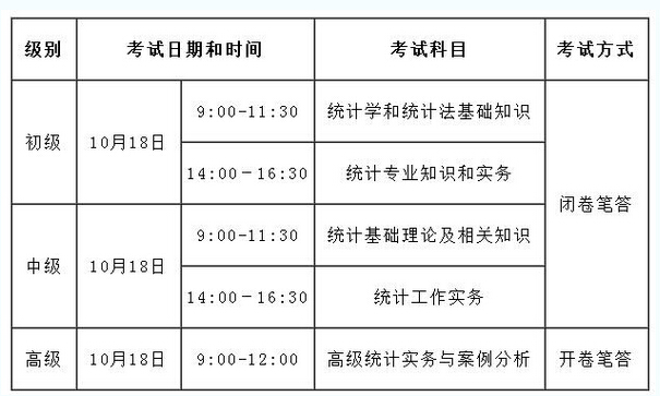 2015年度統(tǒng)計(jì)專(zhuān)業(yè)技術(shù)資格考試安排如下: