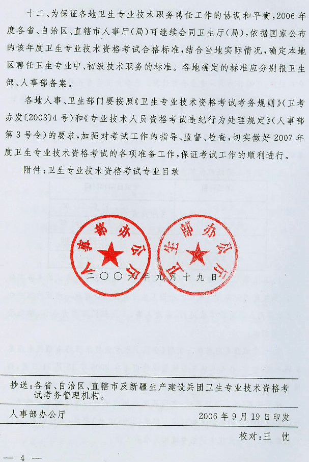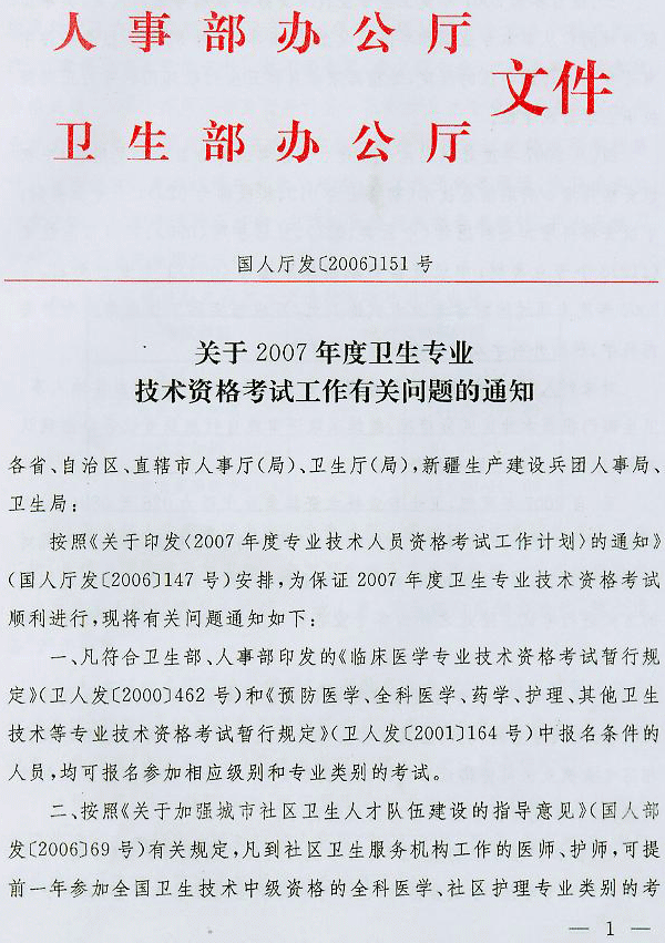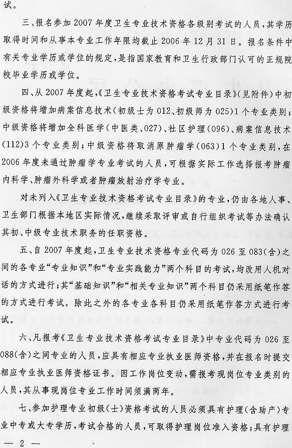 關(guān)于2007年衛(wèi)生專業(yè)技術(shù)資格考試工作有關(guān)問題的通知