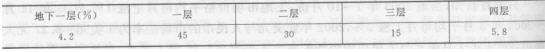 其他基本資料有:該區(qū)域同類建筑物建筑造價為1000元/m2,不可預(yù)見費為5%,銷售費用為房地產(chǎn)總價的6%,同期銀行貸款利率為5.31%,房地產(chǎn)開發(fā)利潤為房地產(chǎn)總價的16%;各商戶分攤土地面積比例原則為以其所購買商用房建筑面積占總建筑面積比例進行分攤;該城市的樓層地價分配比例表如表4-4: