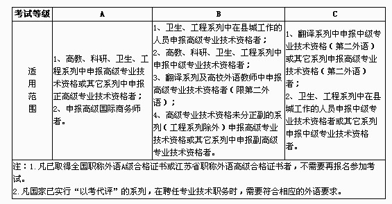 (一)凡需委托國家評審或國家明文規(guī)定需要提供全國職稱外語等級考試有效成績的系列(專業(yè)),按國家有關(guān)規(guī)定執(zhí)行,參加全國職稱外語等級考試。