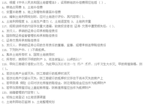 - 2015土地估價(jià)師《土地估價(jià)相關(guān)知識(shí)》考前押題第三套122015-06-01