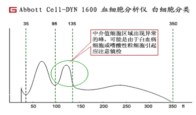 (1)中介值細胞區(qū)域出異常白細胞峰。