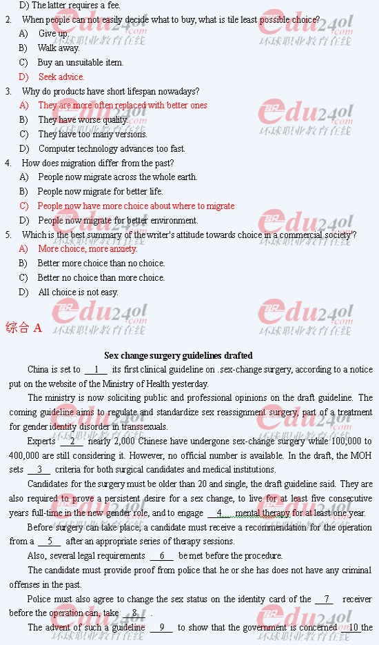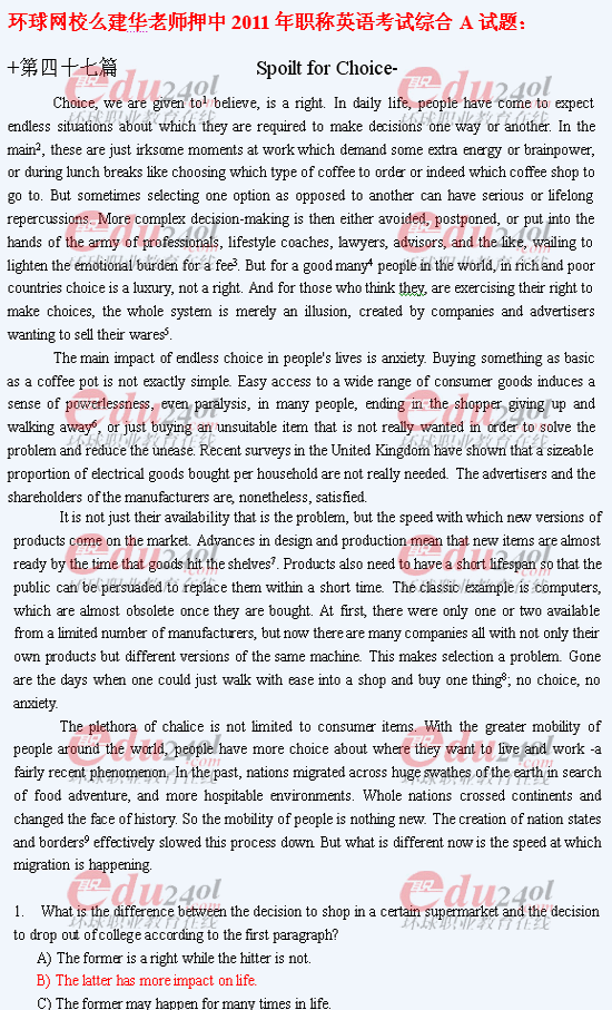 - 重慶2017年職稱英語(yǔ)理工類考試考前沖刺練習(xí)補(bǔ)全短文2017-09-08