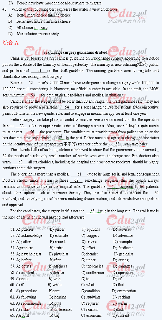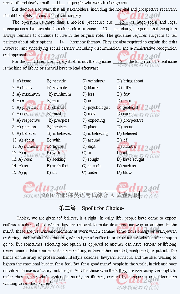 - 重慶2017年職稱英語(yǔ)綜合類考試考前沖刺練習(xí)完形填空2017-09-08