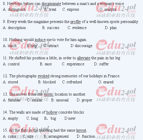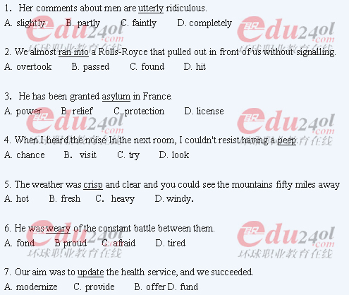 環(huán)球網(wǎng)校率先發(fā)布2012年職稱英語考試試題及答案-綜合類A級(jí)詞匯部分(試卷代碼11),