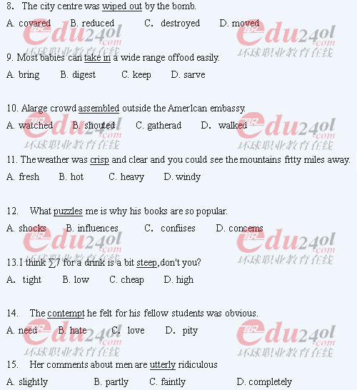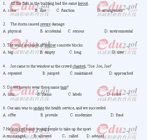 環(huán)球網(wǎng)校率先發(fā)布2012年職稱英語考試試題及答案-綜合類A級詞匯部分(試卷代碼22),