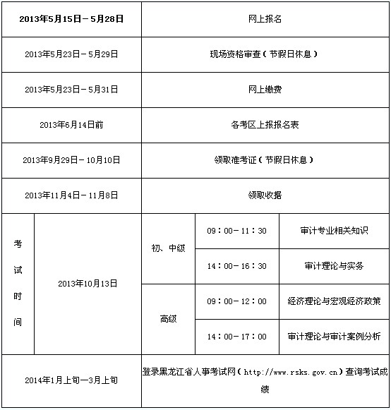 2013年黑龍江審計(jì)師考試報(bào)名時(shí)間