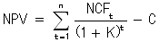 NCF:投產后每年現(xiàn)金流量凈額,C:初始投資額,n:經營期間,m:建設期間