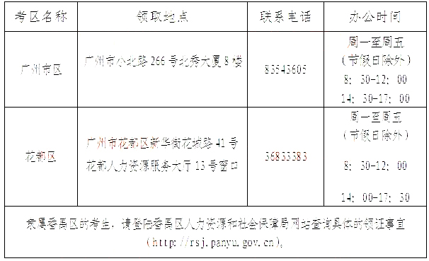 注:在廣東省人事考試局報名的考生,請與廣東省人事考試局聯(lián)系領取(地址:廣州市天河路13號潤粵大廈四樓)。