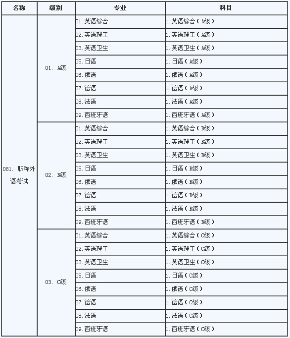 三、2015年度職稱外語考試仍設(shè)英語、日語、俄語、德語、法語、西班牙語6個(gè)語種,每個(gè)語種分為A級、B級、C級3個(gè)級別,其中英語每個(gè)級別分設(shè)綜合、理工、衛(wèi)生3個(gè)專業(yè),其他語種不分設(shè)專業(yè)。各級別、專業(yè)的試題全部為客觀題,在答題卡上作答。我省醫(yī)古文和古漢語仍為全省統(tǒng)考,分為A級、B級、C級3個(gè)級別,全部為主觀題,在試卷上作答。