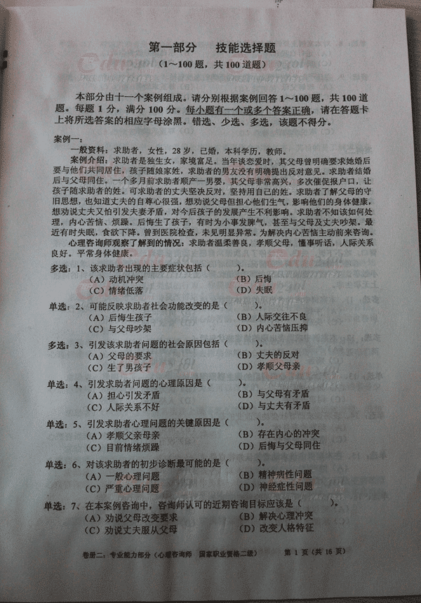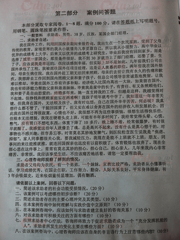 2012年11月心理咨詢師二級專業(yè)技能考試真題