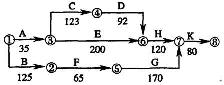 關(guān)鍵線(xiàn)路之二①→②→⑤→⑦→⑧→⑨(或A→C→D→H→K)(1分)
