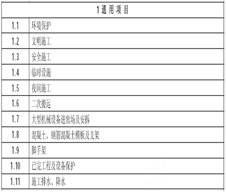 1 | 安全文明施工(含環(huán)境保護、文明施工、安全施工、臨時設施) |