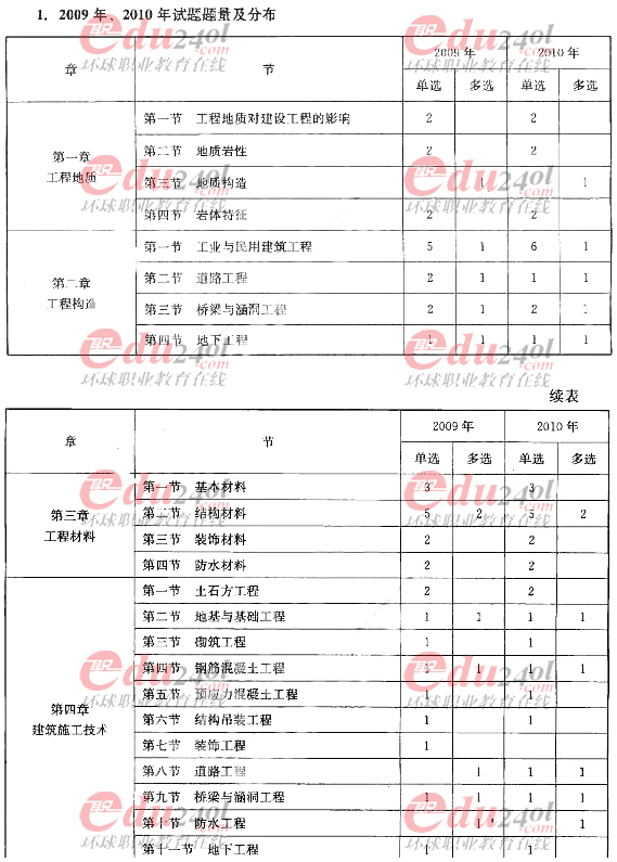 造價工程師《技術(shù)與計(jì)量》(土建)歷年考試特點(diǎn)及題量分布