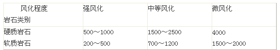 注:①對于微風化的硬質(zhì)巖石,其承載力如取用大于4000kPa時,應(yīng)由試驗確定;
