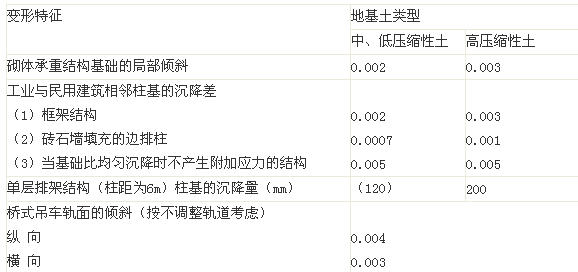 必須指出,地基的變形計(jì)算,目前還比較粗略。至于地基變形的允許值則更難準(zhǔn)確確定。我國規(guī)范根據(jù)對(duì)各類建筑物沉降觀測(cè)資料的分析綜合和對(duì)某些結(jié)構(gòu)附加內(nèi)力的計(jì)算,以及參考一些國外資料,提出了地基變形的允許值(表7-18)。對(duì)表中未包括的其它建筑物的地基變形允許值,可根據(jù)上部結(jié)構(gòu)對(duì)地基變形的適應(yīng)能力和使用上的要求來確定。