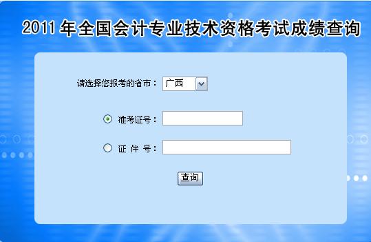 廣西2011年會(huì)計(jì)職稱考試成績查詢現(xiàn)已開通