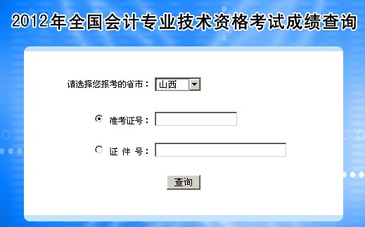 2012年山西會計職稱成績全國統(tǒng)一查詢系統(tǒng)已于11月30日開通,考生可登錄"全國會計資格評價網(wǎng)"查詢山西省會計職稱考試成績。