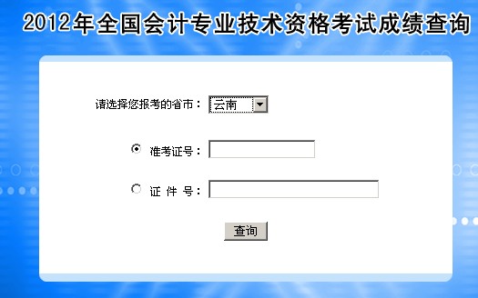 云南2012年會(huì)計(jì)職稱(chēng)考試成績(jī)查詢?nèi)肟?/h1>