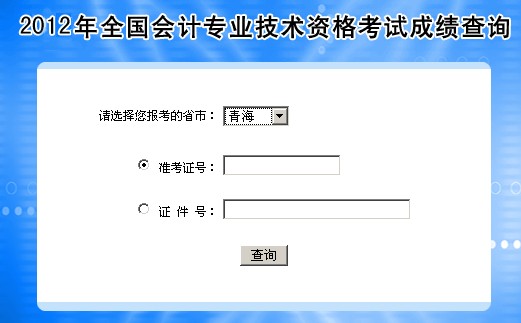 青海2012年會計職稱考試成績查詢?nèi)肟?/h1>