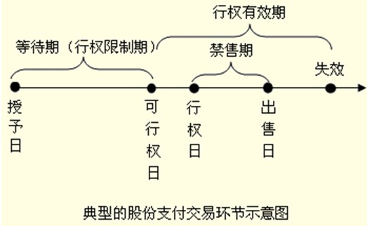 以薪酬性股票期權(quán)為例,典型的股份支付通常涉及四個(gè)主要環(huán)節(jié):授予,可行權(quán),行權(quán)和出售。