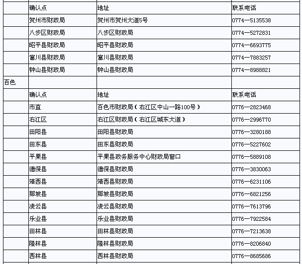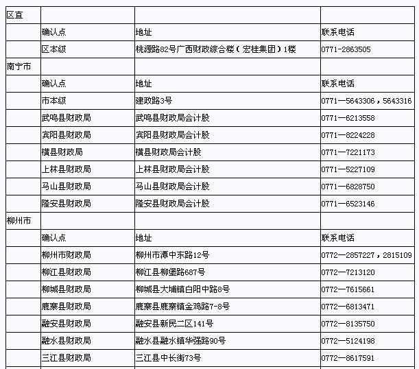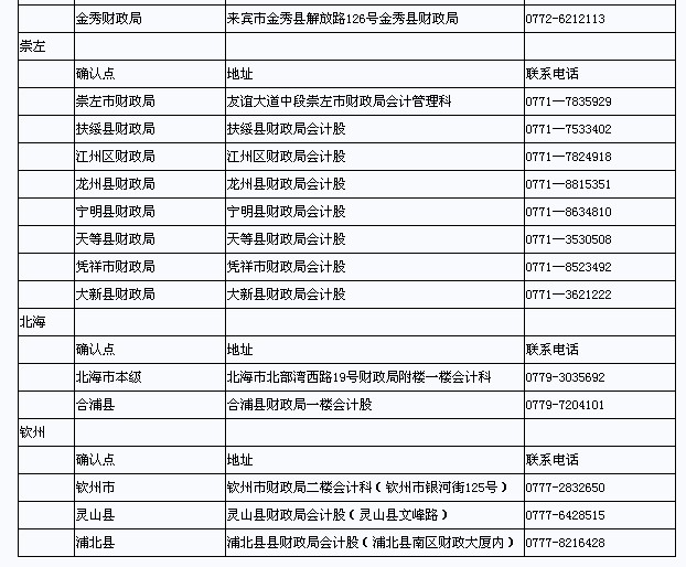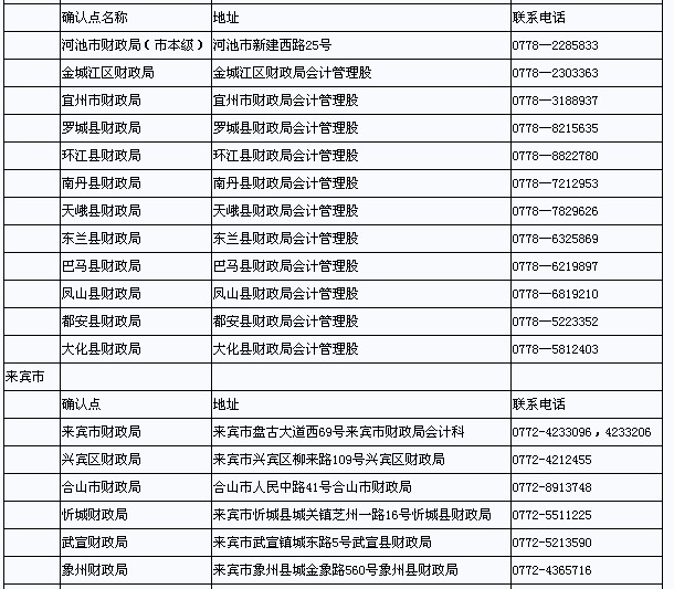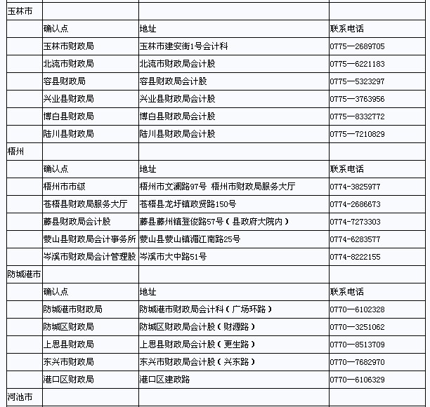 廣西省2013年初級(jí)會(huì)計(jì)職稱考試各地市確認(rèn)地址和聯(lián)系方式