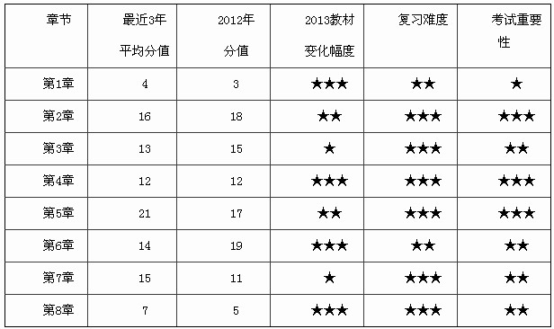 2013年教材唯一沒有變化的是,還是八章(可能這個數(shù)字大家都喜歡)。除第三章和第七章的變化相對較小之外,其余六章的變化讓我們目瞪口呆。