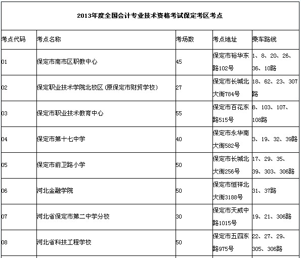 河北保定2013年會(huì)計(jì)職稱考試考點(diǎn)分布圖
