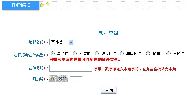 吉林省2013年中級會計職稱考試準考證打印10月15日-27日