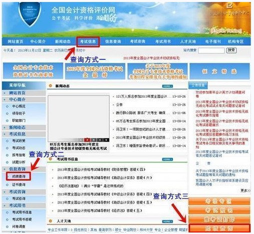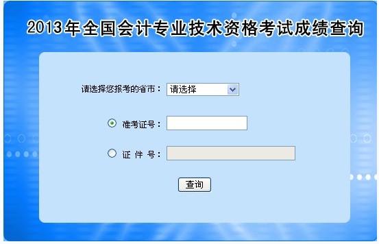 官方2013年會計職稱考試成績查詢地址:http://kzp.mof.gov.cn/index.jsp