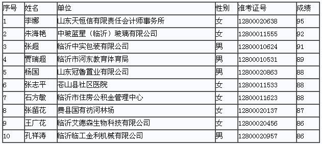 臨沂市2013年中級會計職稱考試成績查詢金榜
