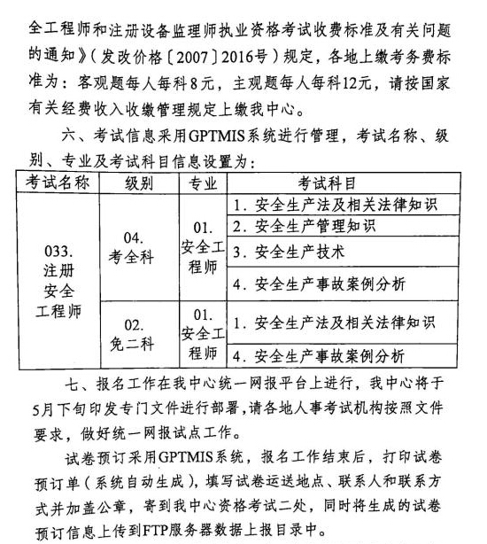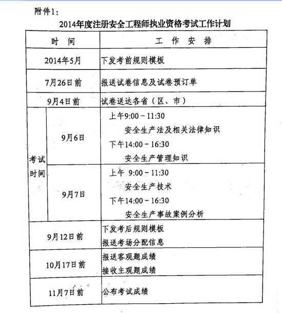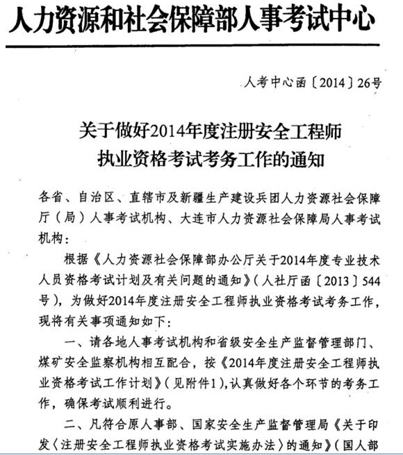 2014年注冊(cè)安全工程師考試考務(wù)工作的通知