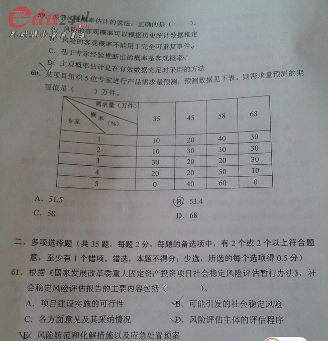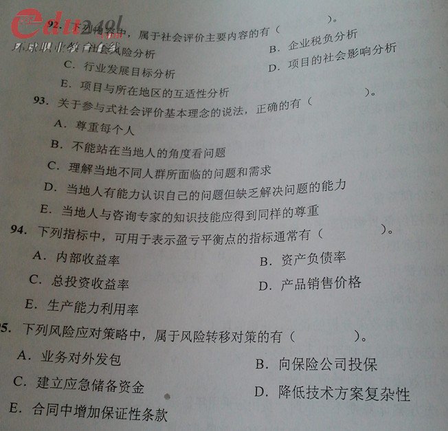 摘要 咨詢工程師考試《決策分析與評價》真題