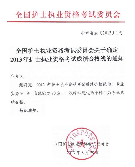2013年護士執(zhí)業(yè)資格考試分數(shù)線最新消息